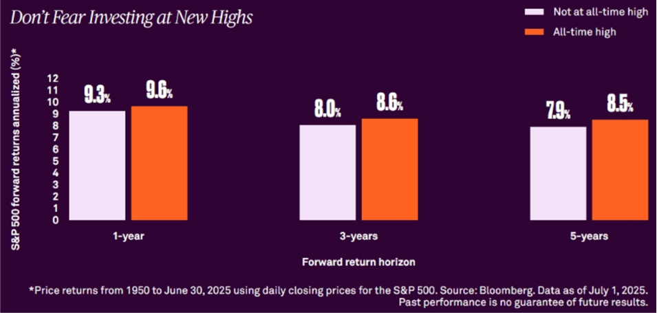 Plutôt que de redouter les sommets historiques, les investisseurs devraient les considérer comme un puissant rappel de la résilience et du potentiel de croissance à long terme des marchés boursiers. Ceux qui tentent d’éviter les sommets historiques en attendant un « meilleur » point d’entrée se retrouvent souvent à rater des occasions et à obtenir des rendements moindres en moyenne.